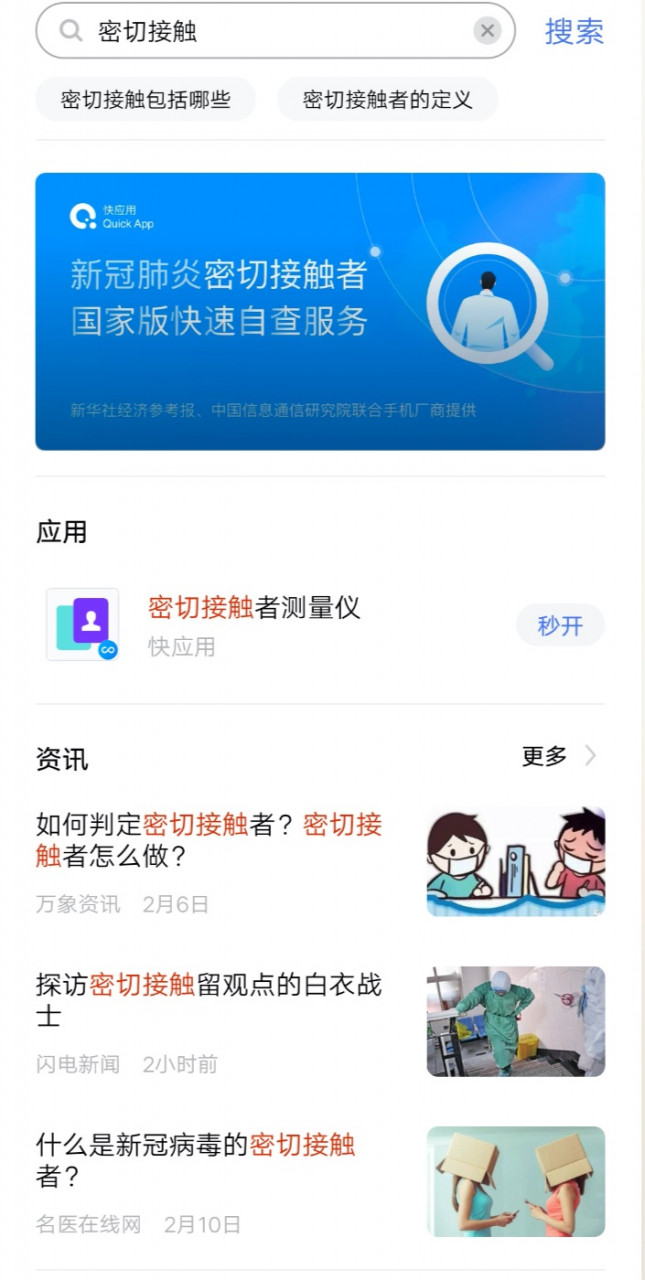 手机端正式上线。该项自查服务将协助用户安全方便地查询自己是否与患者同行或密切接触,然后积极主动地进行防护。vivo 用户可以从手机负一屏、vivo 大局查找、快使用中心等多个进口快捷进入此快使用。